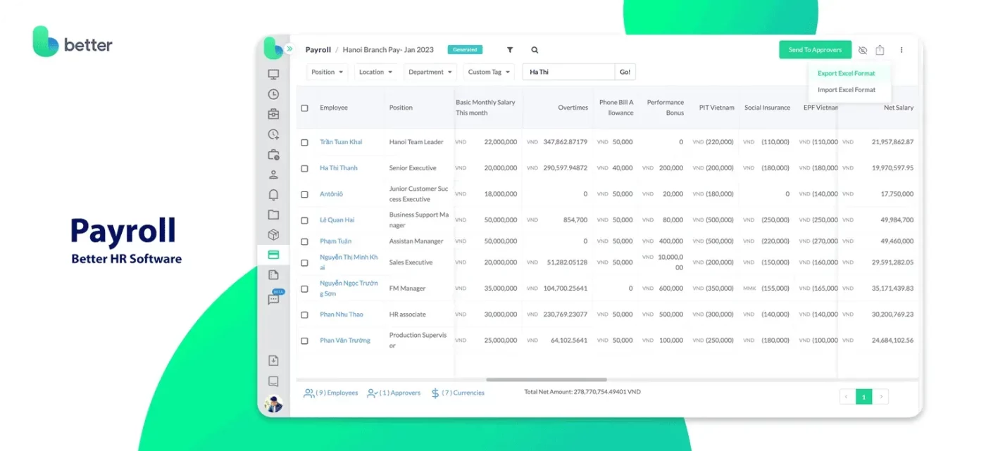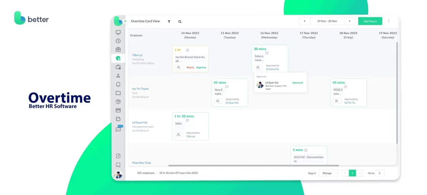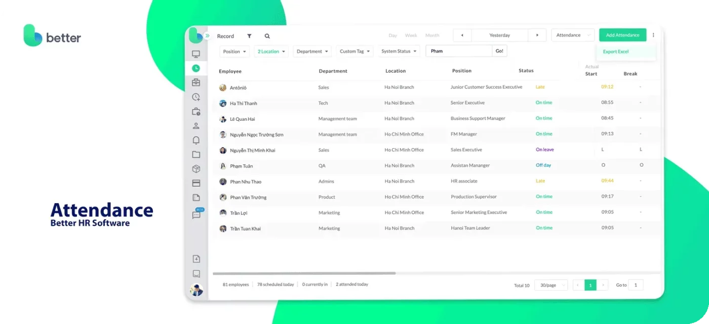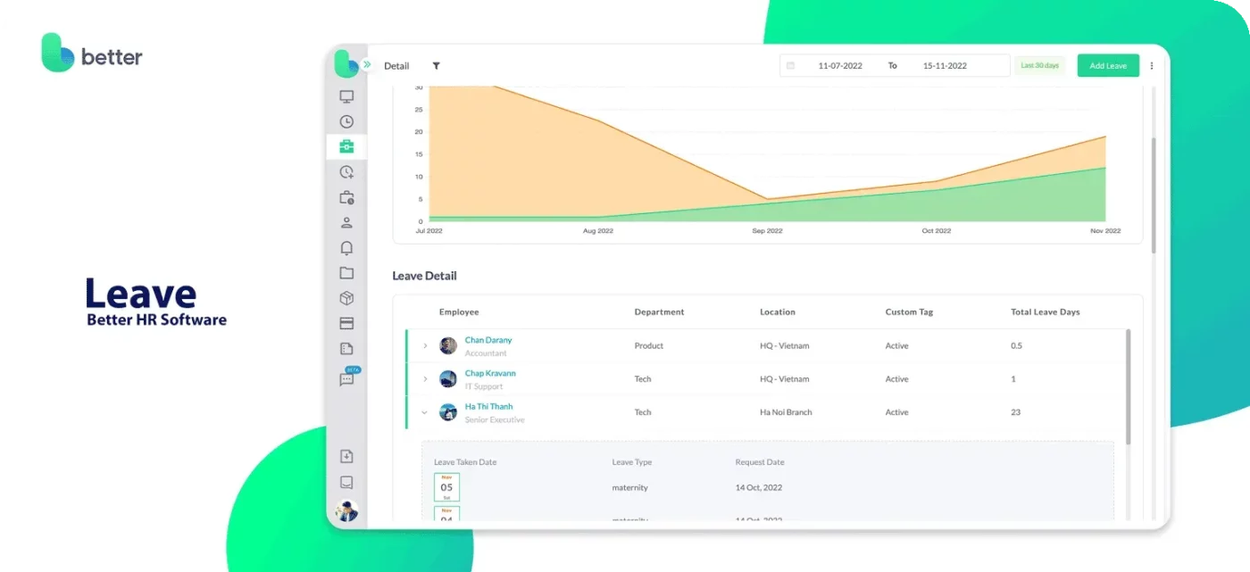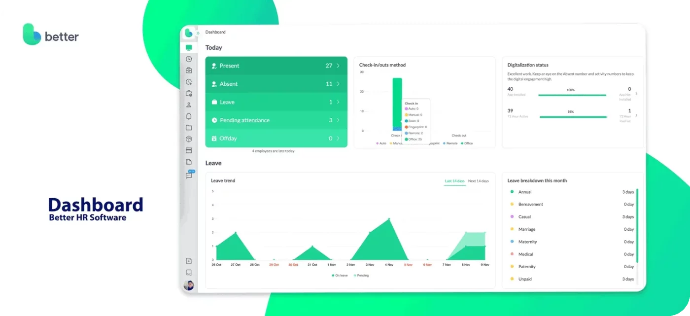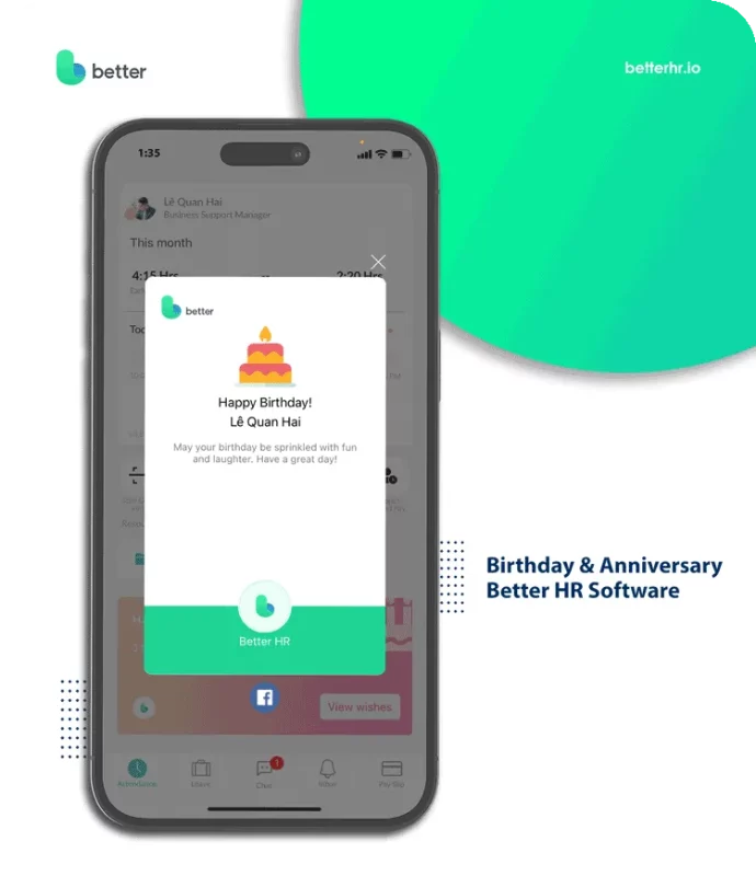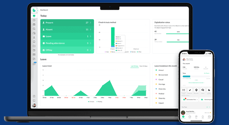 treamline your attendance management process with Better HR HRIS system. Say goodbye to the need for fingerprint scanners as Better HR offers multiple check-in/out methods such as auto, manual, remote, office, and QR scan. Experience the simplicity, ease, and affordability of our human resource management software in Vietnam. Take advantage of our free trial and try Better HR HRMS software today!